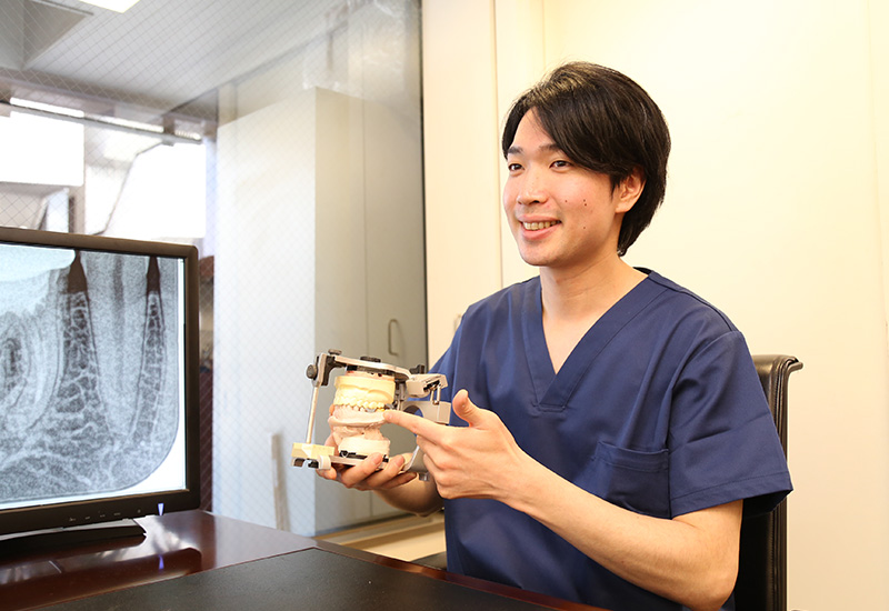 また、セラミック等の被せ物に関しても、技工士と連携し天然の歯や周囲の歯と調和した審美的により優れた治療が可能です。
